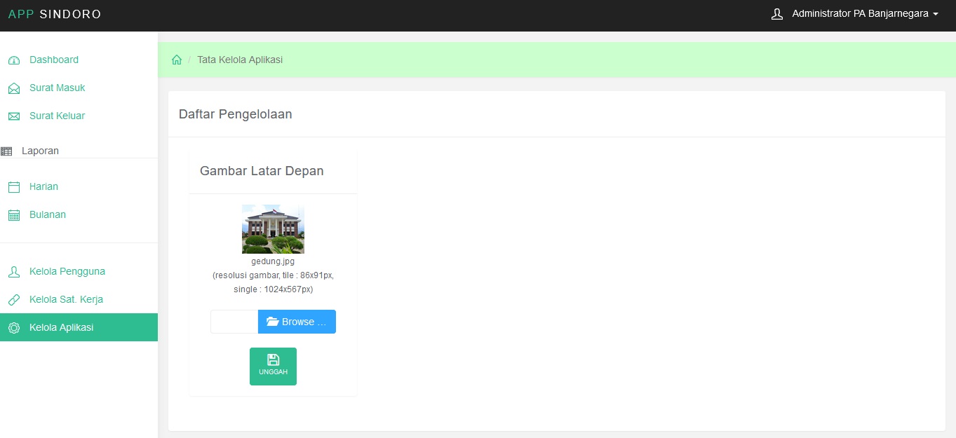 Menu ini hanya berlaku untuk pengguna administrator & digunakan untuk pengaturan (custom) aplikasi, untuk sementara hanya tersedia custom latar depan.
